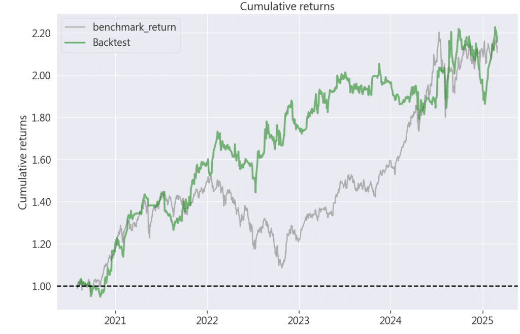 The Calmar ratio also significantly exceeds that of the market, reflecting stronger drawdown resilience and making the strategy particularly suitable for investors with higher risk awareness.