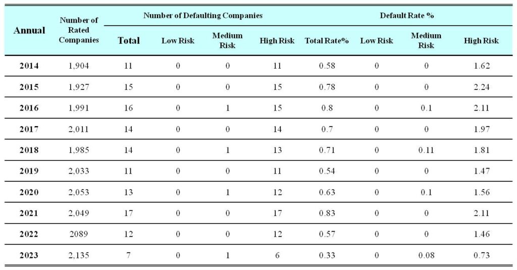 The number of companies that default and default rate meet expectations. With a lower level (i.e., higher risk), the number of companies that default and the default rate increase.