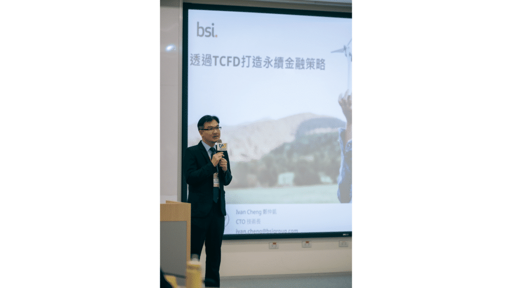 Mr. Ivan Cheng, Chief Technology Officer of BSI, delivered a keynote speech on “Developing Sustainable Financial Strategies through TCFD Reports.”