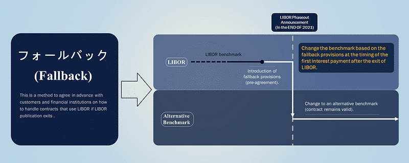 There are two ways to transition interest rate benchmarks, namely “移行” and “フォールバック,” differing in the timing of the rate benchmark transition.