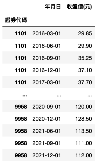 df2 = df2.rename(columns = {'證券碼':'證券代碼', '財務資料日':'年月日'})