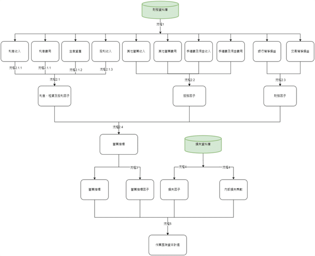 我們將作業風險實務計算流程之標準化,整理計算流程圖如下,可分為五個流程: