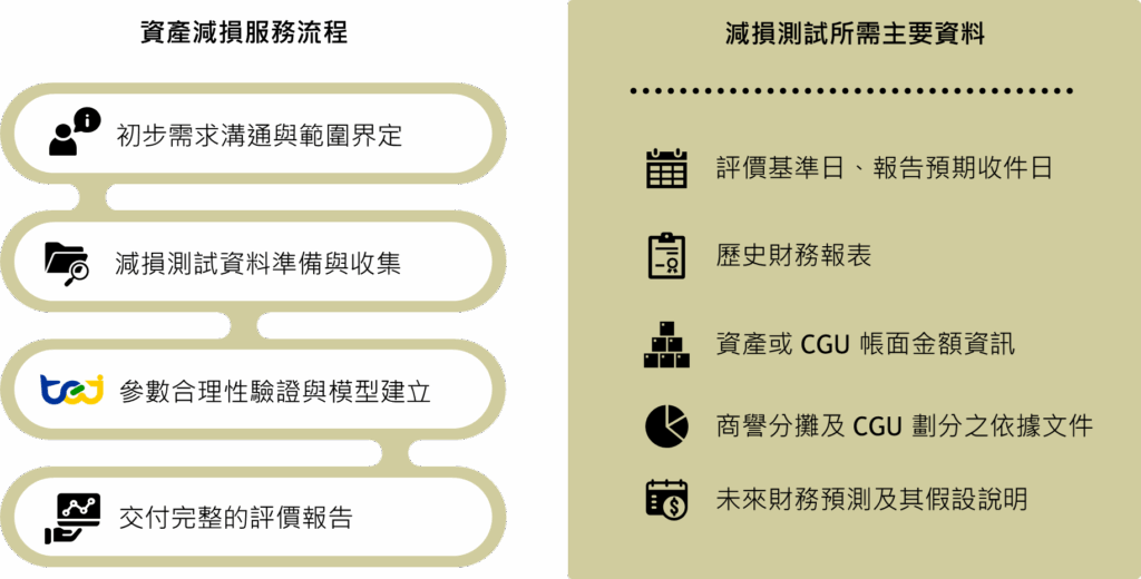 TEJ減損測試服務流程及所需主要資料列示如下: